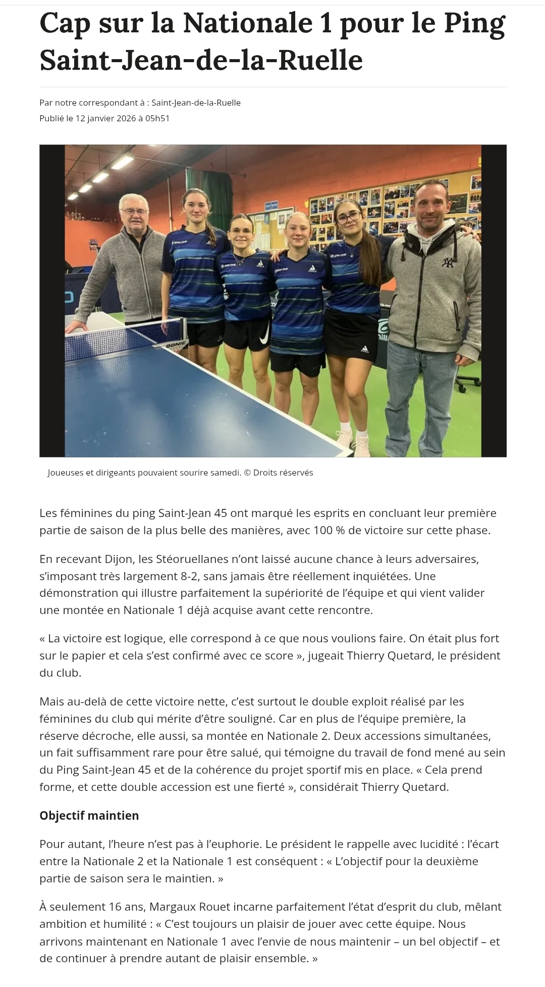 Cap sur la Nationale 1 pour Ping St Jean 45